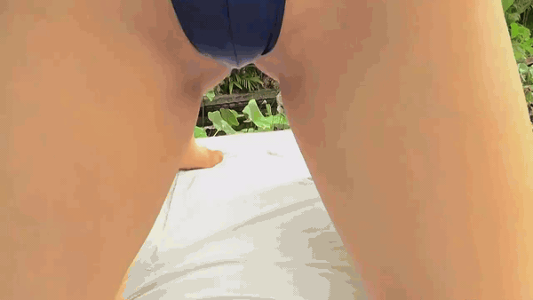プールサイドに座って谷間と股間をチラチラさせながら、